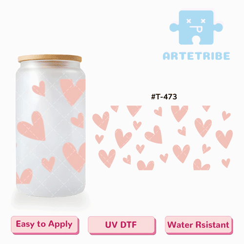 16oz uvdtf Valentine's Day pink hearts--#T-352
