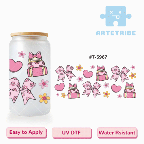 16oz uvdtf cake book bow heart with flowers pink tone cute Boho--#T-5967