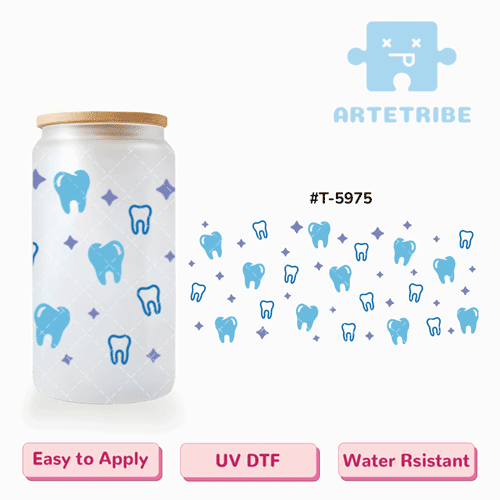 16oz uvdtf tooth teeth dentist blue purple tone Boho--#T-5975