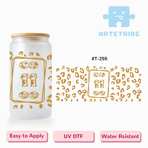 16oz uvdtf leopard print coffee khaki tone--#T-255