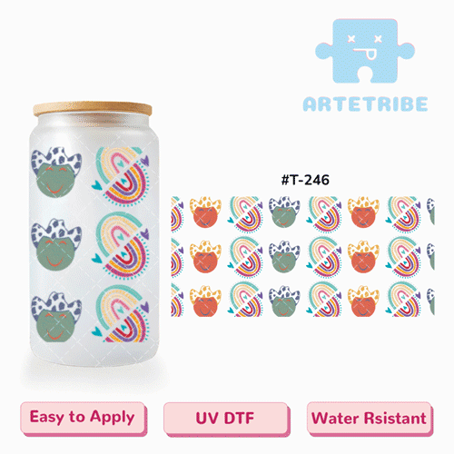 16oz uvdtf leopard print cowboy hat smilely face rainbow--#T-246