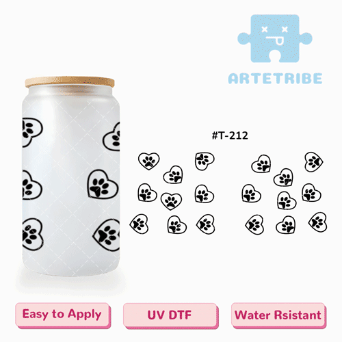 16oz uvdtf pet dog mom pink black paw flower heart--#T-1262