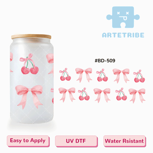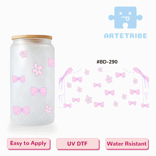 16oz uvdtf pink bow flower white curtains--#BD-290