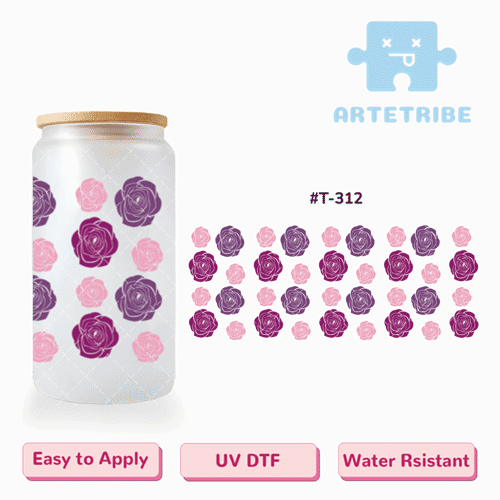 16oz uvdtf pink dark purple rose floral pattern Boho--#T-312