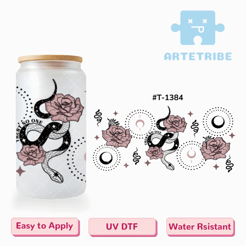 16oz uvdtf snake rose black pink tone Boho--#T-1384
