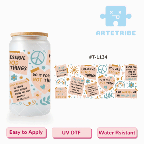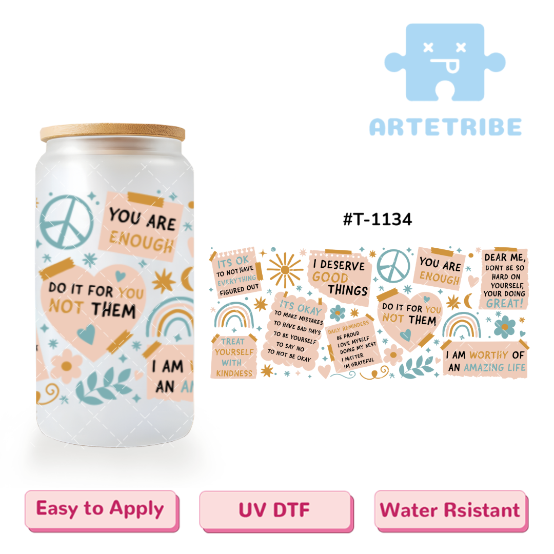 16oz uvdtf Morandi color post-it notes rainbow run flower heart Boho--#T-1134